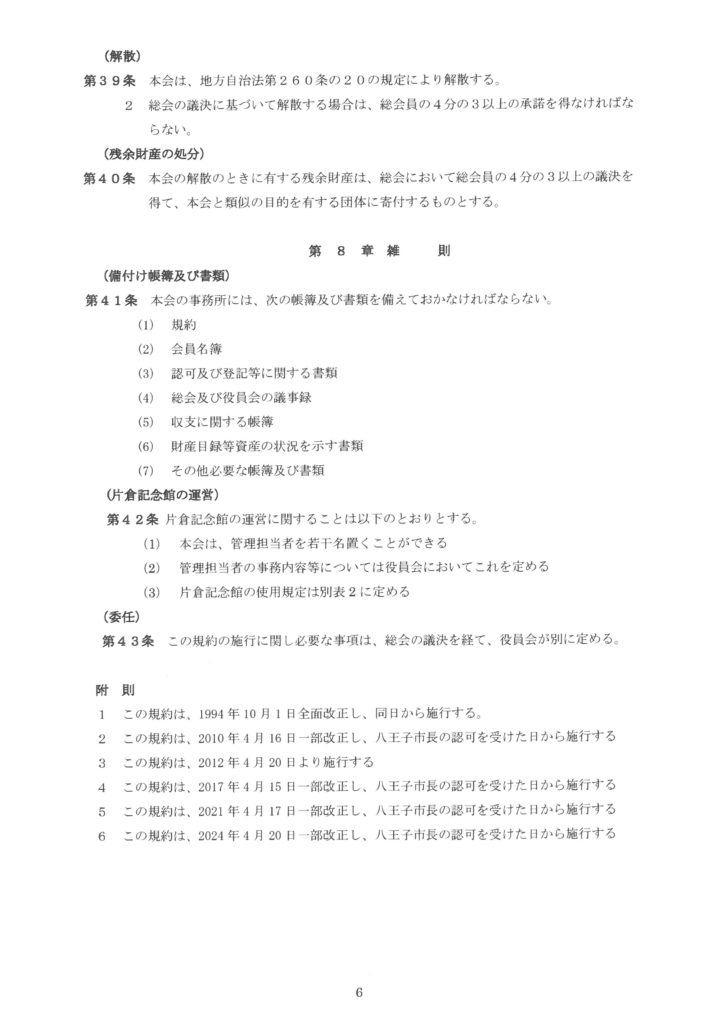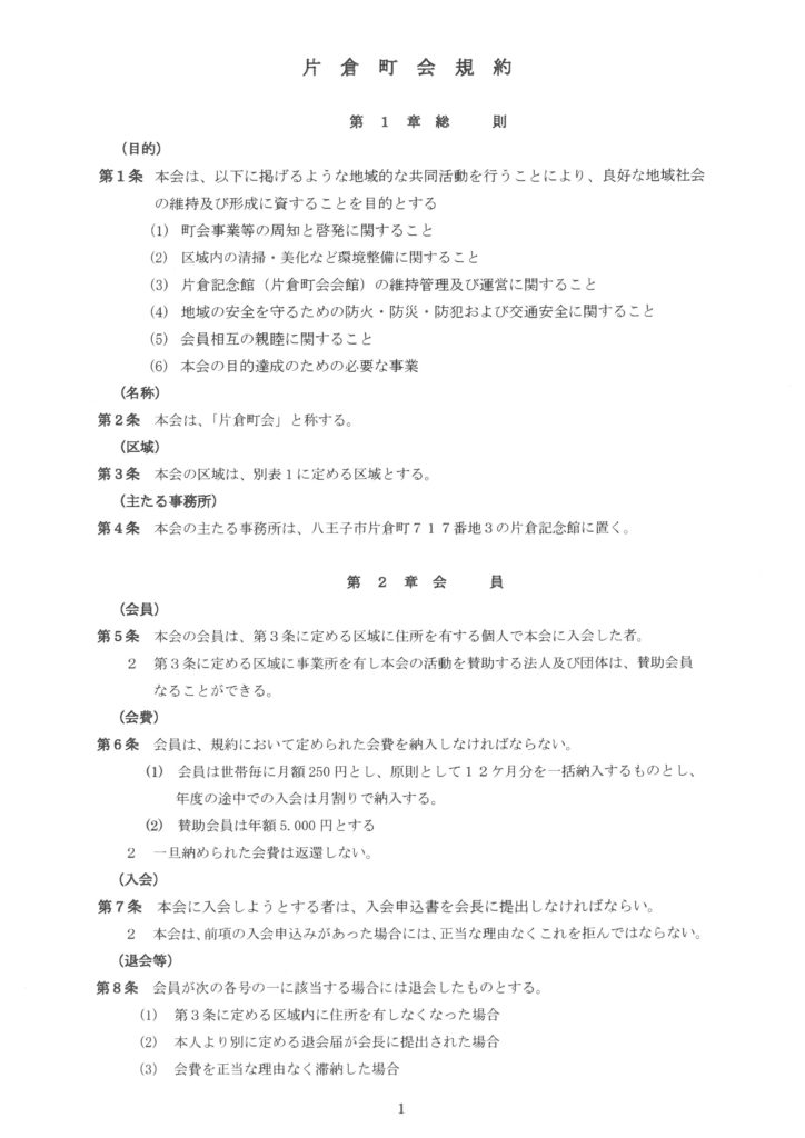 なお、片倉町会は、平成6年12月に八王子市から地方自治法第260条の2の規定による「地緑による団体※」の認可を受けています。