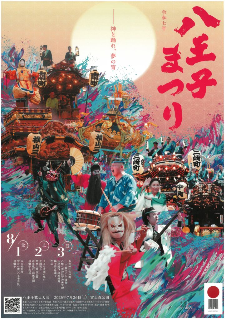 令和七年「八王子まつり(神と踊れ、夢の宵)」は、8/1(金)・8/2(土)・8/3(日)に開催されます。