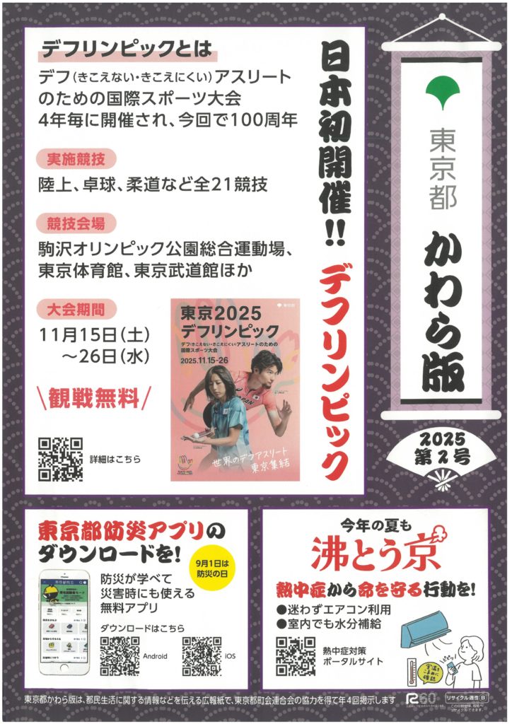 東京都かわら版は、都民生活に関する情報などを伝える広報紙で、東京都町会自治会連合会の協力で年4回発行されています。 投稿ナビゲーション 令和七年 八王子まつり 8/1(金)・2(土)・3(日) 子ども食堂にこにこ 8/2(土)AM11:30~PM2:00